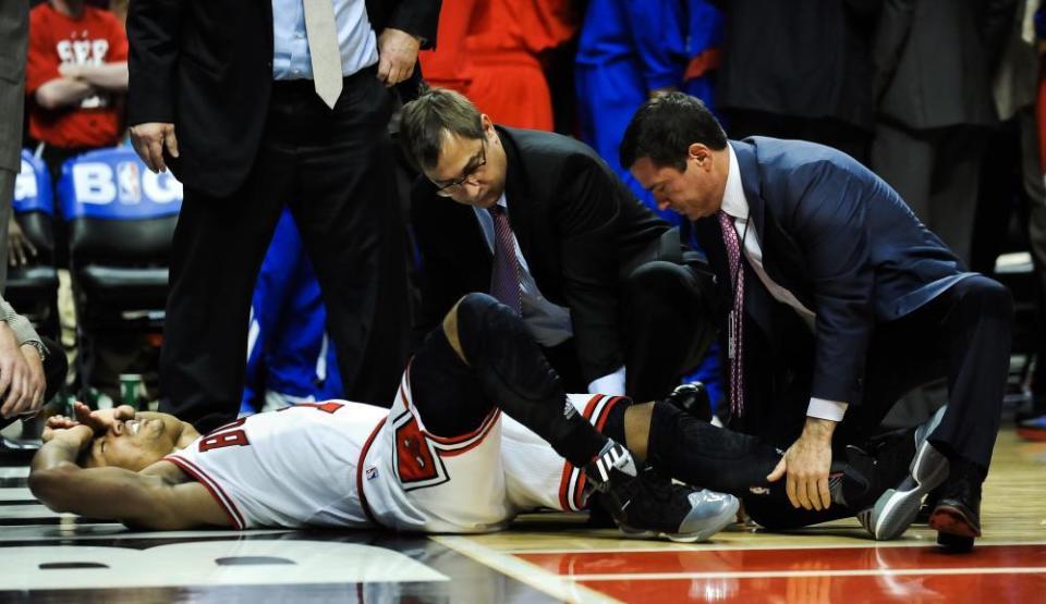 2013年的11月,右膝半月板撕裂。2015年2月,右膝半月板再次撕裂。2017年4月,左膝半月板撕裂。频繁的伤病摧毁了罗斯的身体,他的状态随之急速下滑,最终在2016年6月,公牛决定推倒重建,他们将罗斯交易至尼克斯。在得知被交易后,罗斯当场情绪失控,泣不成声。被家乡球队送走的他就像是个被抛弃的孩子。