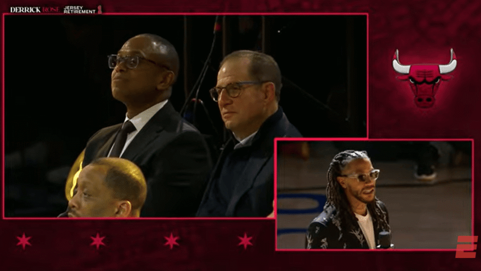 首先,我想感谢上帝,是他让这一刻成为现实。没有祂,就不会有今天的一切。我要感谢莱因斯多夫家族,杰里(杰里-莱因斯多夫,公牛老板),谢谢你所做的一切;迈克尔(迈克尔-莱因斯多夫,公牛老板之子,现公牛CEO),也谢谢你的所有付出。感谢芝加哥公牛队整个团队,感谢所有幕后默默耕耘的人,感谢为今晚这场活动操劳的每一个人。谢谢你们的辛苦付出,这份努力,所有人都看在眼里,从未被忽视,真的万分感谢。