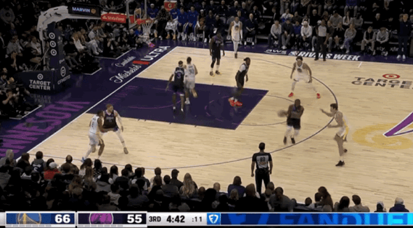 易边再战,波杰姆斯基快攻上篮,个人开局连得6分。麦克丹尼尔斯三分命中,库里和穆迪连得5分,兰德尔后仰跳投,波杰姆斯基跳投回应。追梦格林补篮得手,爱德华兹2罚全中,库里急停跳投,爱德华兹上篮得手。桑托斯空切得分,兰德尔暴扣得手,理查德三分命中。勇士打出一波19-4的进攻高潮,成功将分差拉开到24分,海兰德突破挑篮打进。三节比赛结束,勇士85-63领先森林狼。