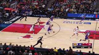 湖人快攻 拉拉维亚助攻詹姆斯滑翔劈扣