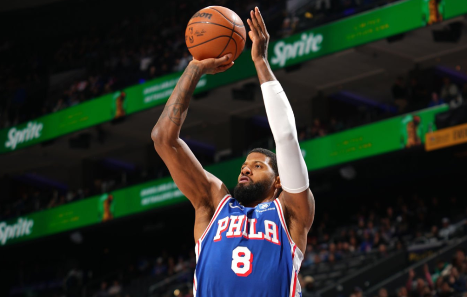 76人139-122战胜雄鹿,保罗-乔治出战32分钟,21投11中,其中三分球15投9中,得到32分5篮板5助攻2抢断,他所命中的9记三分追平了队史纪录,1995年的达纳-巴罗斯、2021年的丹尼-格林和2022年的马克西都曾单场命中过9个三分。