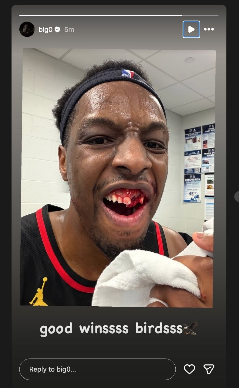 在比赛结束之后,奥孔古更新了自己的社交媒体,他晒出了被杰伦-布朗肘击后的牙齿状况。从照片上可以看到,奥孔武两颗牙被打掉了。