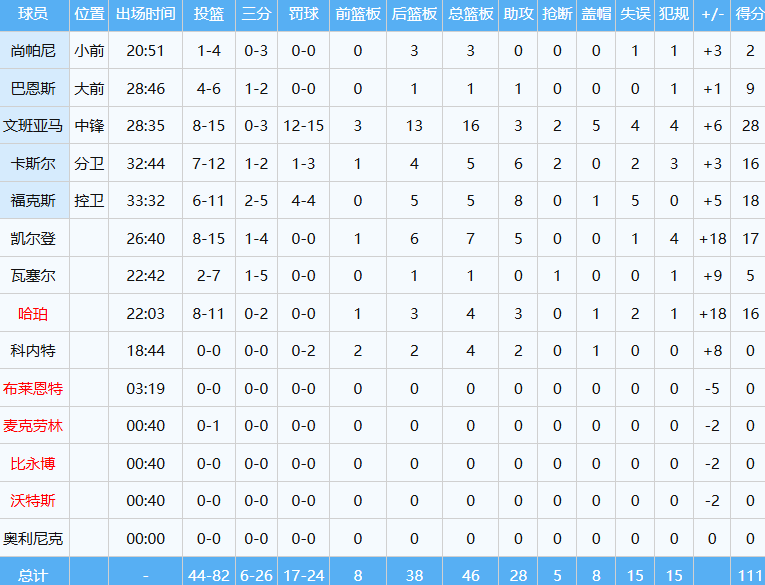 以天赋拉满闻名的火箭,末节全队竟然只有13分进账,而拥有超班天赋的文班亚马末节一人便独揽13分9板3帽,最终带领马刺111-99客场带走胜利。