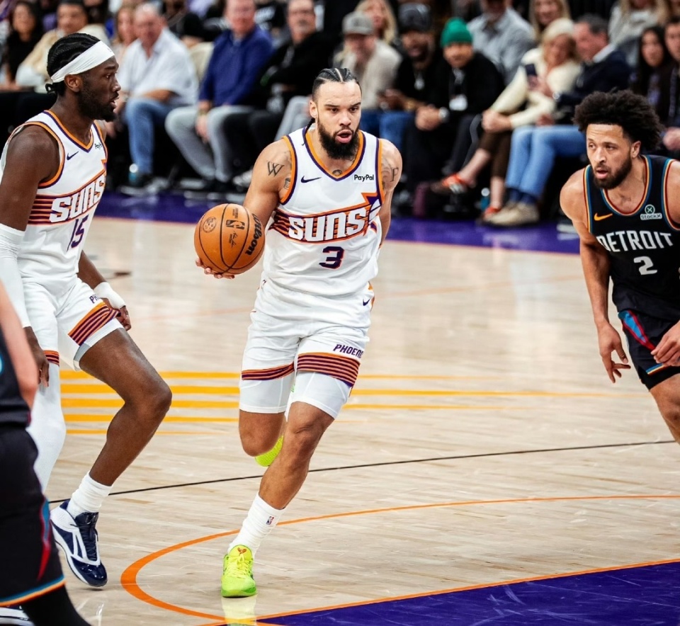 太阳队没有布克也赢球了,他们击败了活塞,狄龙布鲁克斯爆砍40分,太阳本赛季攻守平衡的球员很多,阿伦、奥尼尔、吉莱斯皮、马威等等,两大球星布克和格林还在养伤,赛季初谁都没想到太阳能打这么好,而掘金队戈登+约基奇受伤,贾马尔穆雷带队打得很不错,掘金今天险胜篮网,他们继续保持西部前三的排名,一旦约基奇回归的话,掘金将会是更强大的球队!