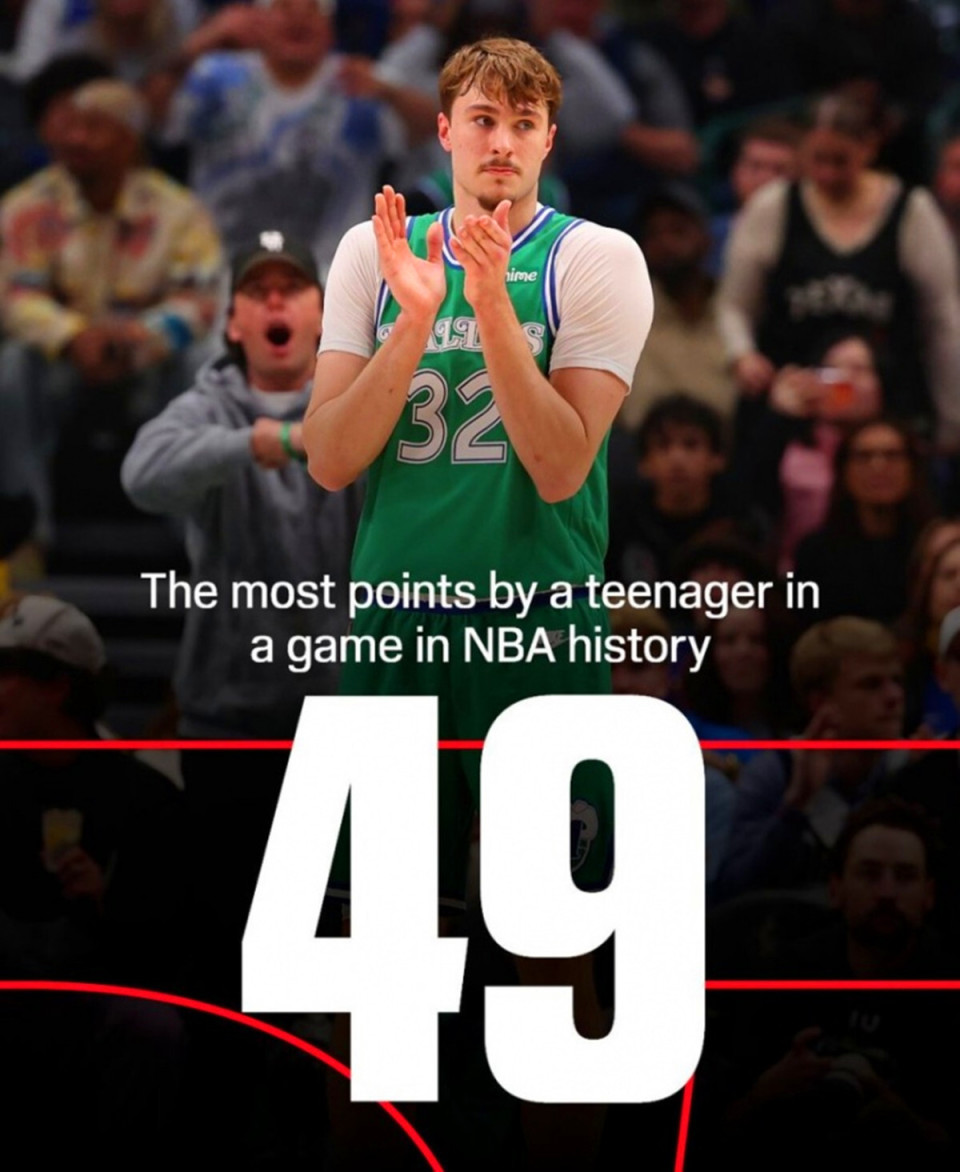 第五项:单场49分创造独行侠队史新秀单场得分纪录。