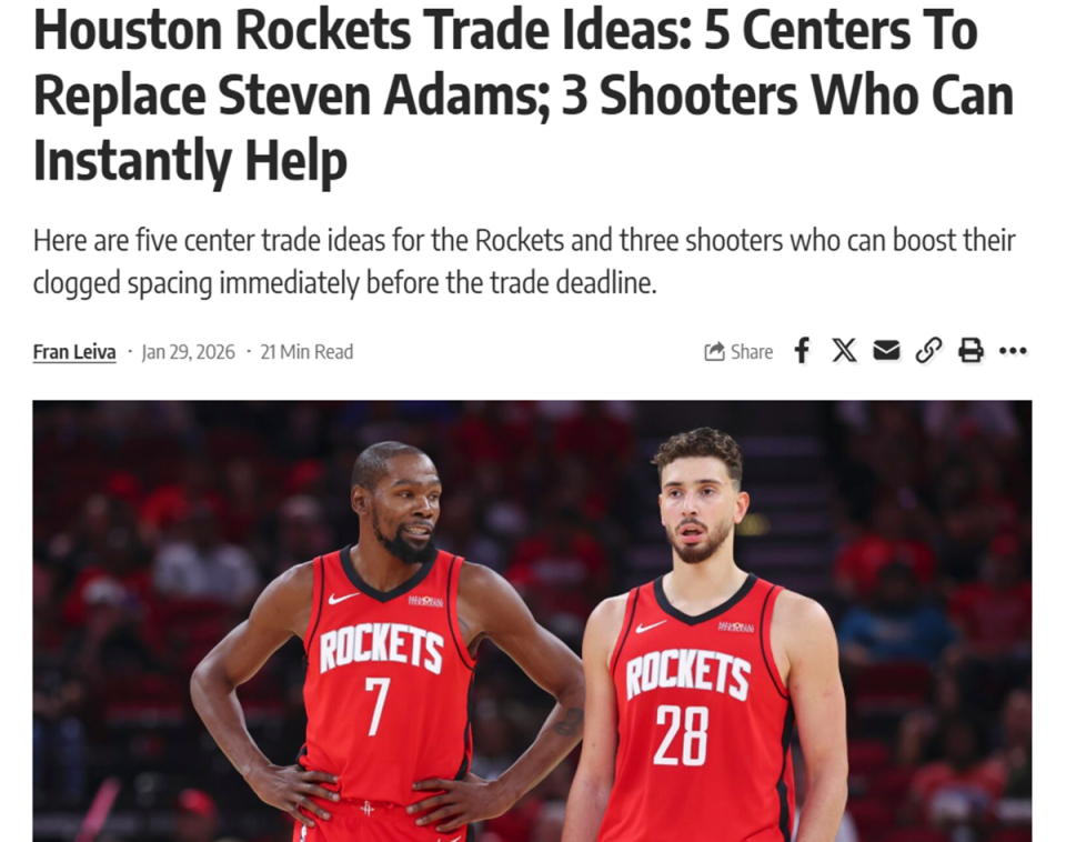 名记曝火箭计划,4人是球队未来!美媒送8笔交易方案补强中锋+射手
