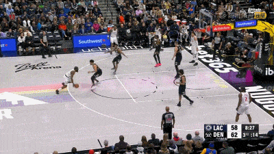 次节比赛,瓦兰投篮得手,巴图姆命中三分,哈达威两罚全中后,莱昂纳德和瓦兰相继得手。约基奇命中罚球,哈登连续命中两记三分缩小分差,之后沃特森和哈登先后命中三分。哈登造犯规两罚全中,斯特劳瑟命中三分后,科林斯一人连得5分,瓦兰打成2+1,穆雷命中三分后,快船队50-59落后掘金队结束上半场比赛。