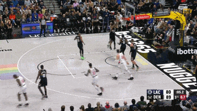 末节决战,哈达威命中三分扩大到15分领先。桑德斯一人打出8-2进攻高潮缩小分差,莱昂纳德连得5分缩小到4分。哈达威三罚全中,莱昂纳德和约基奇先后两罚全中,约基奇随后连得4分重新拉开到11分。莱昂纳德和约基奇先后投篮得手,布朗连续命中罚球,沃特森暴扣扩大到16分。祖巴茨两罚中一后,约基奇命中三分,米勒和穆雷先后得手,掘金队领先到18分,随后快船队和掘金队先后撤下主力,最终掘金队主场击败快船队。