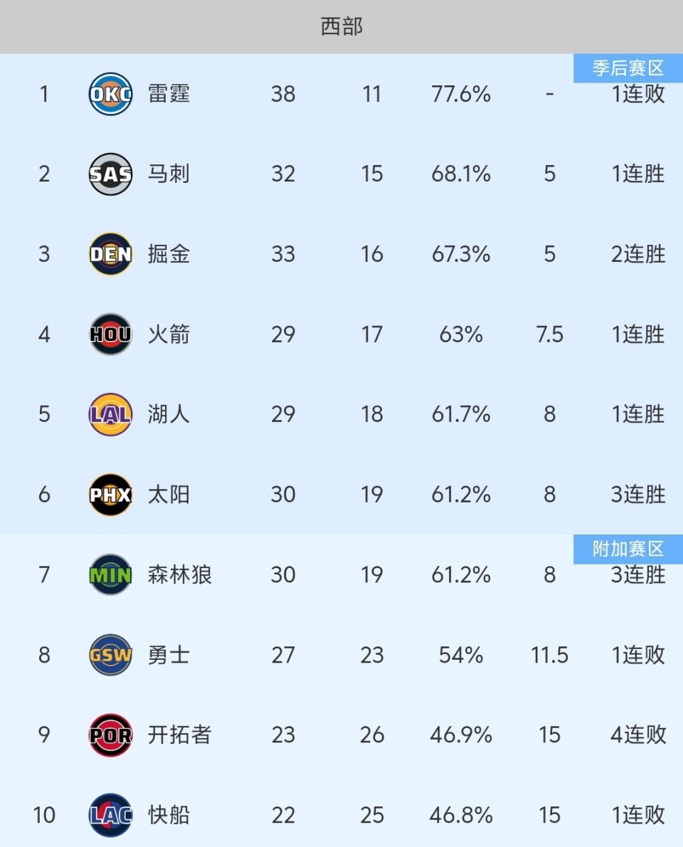 随着勇士124-131惜败,开拓者快船输球,NBA最新积分榜出炉:西部8-10名太乱!