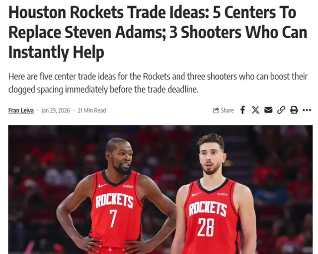 从球队情况来看,一边是亚当斯、范乔丹等人带来的伤病压力;另一边,是管理层迟迟不愿出手的交易态度。火箭想不想补强?该怎么补强?各家媒体都在围绕火箭讨论。