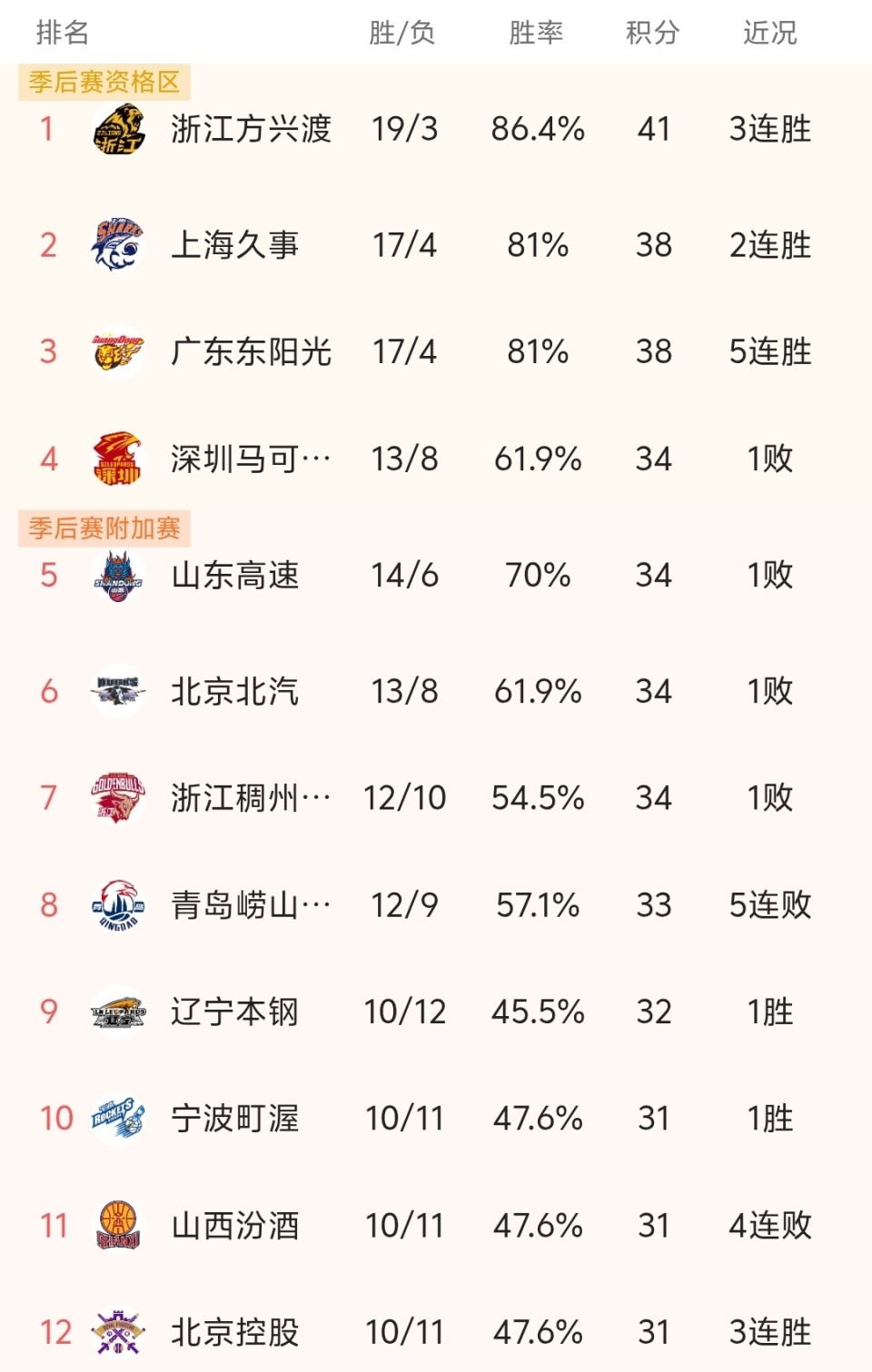 随着广厦68-58胜浙江、辽宁胜天津,CBA最新积分榜出炉:广厦第1!