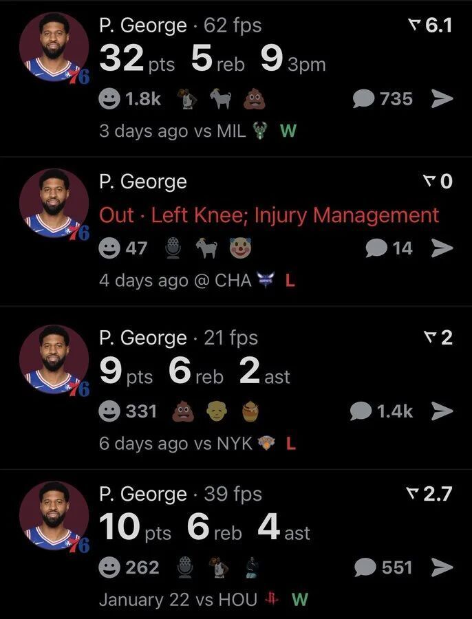 乔治的缺战,对76人还是有一定影响的。