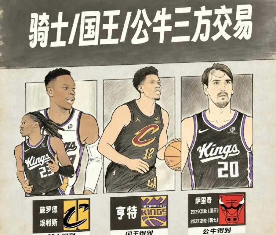 据名记Shams报道,骑士、公牛、以及国王这三支球队达成了一笔重磅交易——