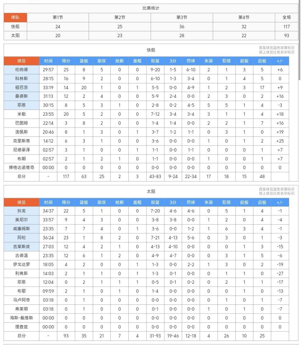 随着快船117-93大胜太阳,湖人输球,NBA最新积分榜出炉:快船升至第9!