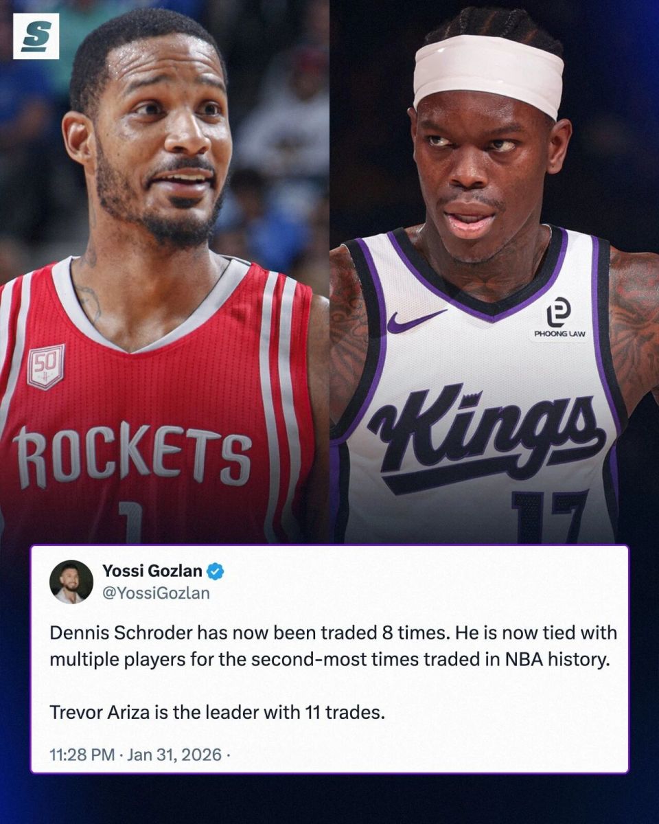 国王队将施罗德送至骑士,这是施罗德生涯第8次被交易,排名NBA历史第二。那么历史第一是谁?特雷沃-阿里扎,生涯11次被交易,至今仍是NBA纪录。阿里扎还有一项纪录,他曾经在4天之内换了4支球队,堪称奇幻漂流。