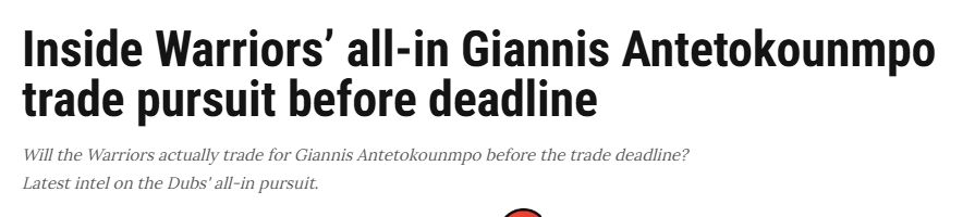 北京时间2月3日,据NBA名记西格尔报道,联盟消息人士透露,金州勇士队是争夺字母哥的球队中,态度最为积极的一支。