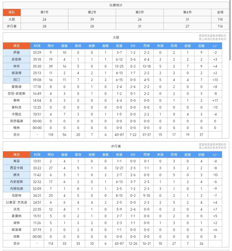 残阵火箭118-114险胜步行者,申京爆砍39+16,谁是最佳?数据不说谎!