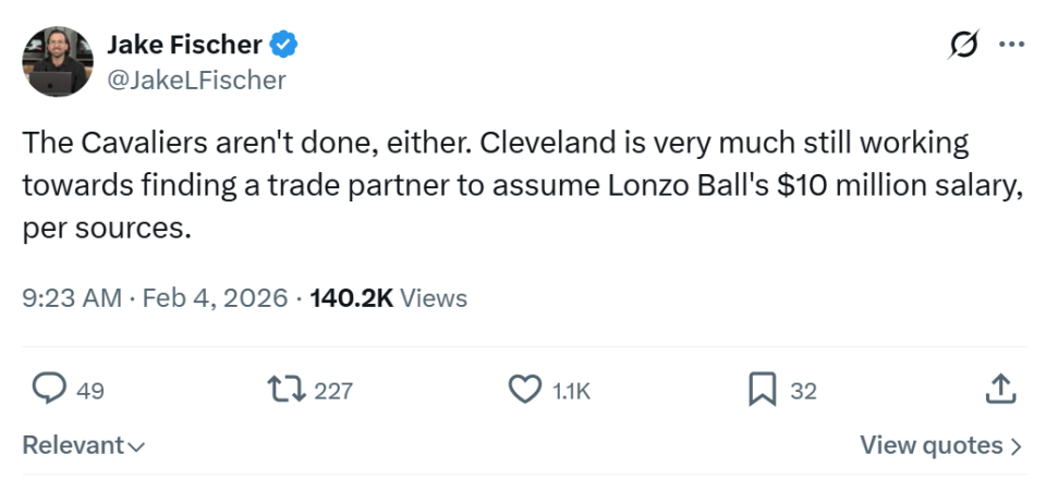 名记Jake Fischer就在哈登交易后第一时间曝出,骑士队的运作还没有结束。