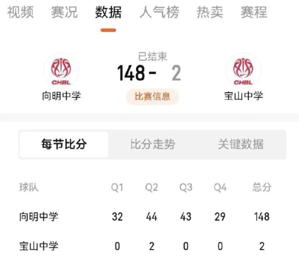 近日,在耐克中国高中女子篮球联赛上海基层赛的比赛中,出现了一场让人无比震惊的比分:148-2。看了这个比分后,很多人都会发出一声感慨:什么仇什么怨?