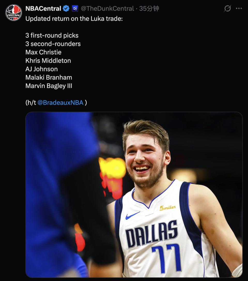 要知道,灰熊在交易贝恩和小贾伦-杰克逊的过程中,获得了7个首轮回报,而东契奇作为联盟球星代表却只换来1个首轮。独行侠从任何角度都看,送走东契奇都是一个错误的决定,他们未来仍需要为这笔交易买单,弥补球队管理层此前所犯下的过错。