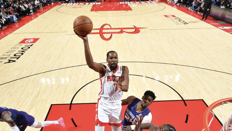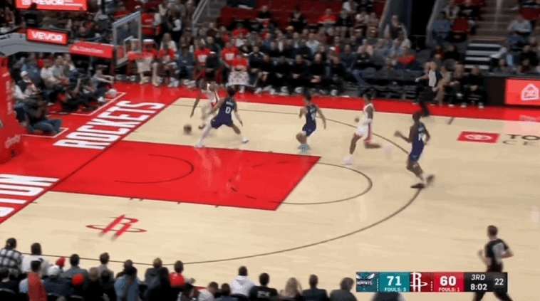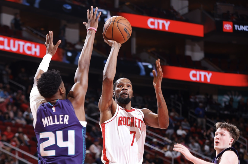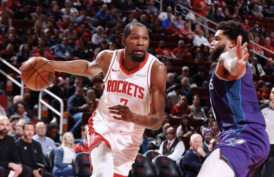 然而,火箭的防守表现极其糟糕,面对黄蜂的持续传球只能配上犯规限制对手的进攻节奏,因此火箭始终无法进一步缩小分差。即便杜兰特单节9中6狂砍15分,但他根本无法用一己之力挽救球队的整体颓势,让黄蜂带着16分领先优势进入第四节。