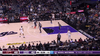 第二节骑士32-24反超比分,但哈登在场上的表现仍旧不好,直到上半场还剩5分18秒,哈登轰进招牌撤步三分,终于打进骑士生涯首球;整个上半场,哈登6投1中、三分3中1拿到3分4助攻1抢断2失误,在场正负值为-14;反观国王队,威少半场6中5高效轰下13分4篮板5助攻。