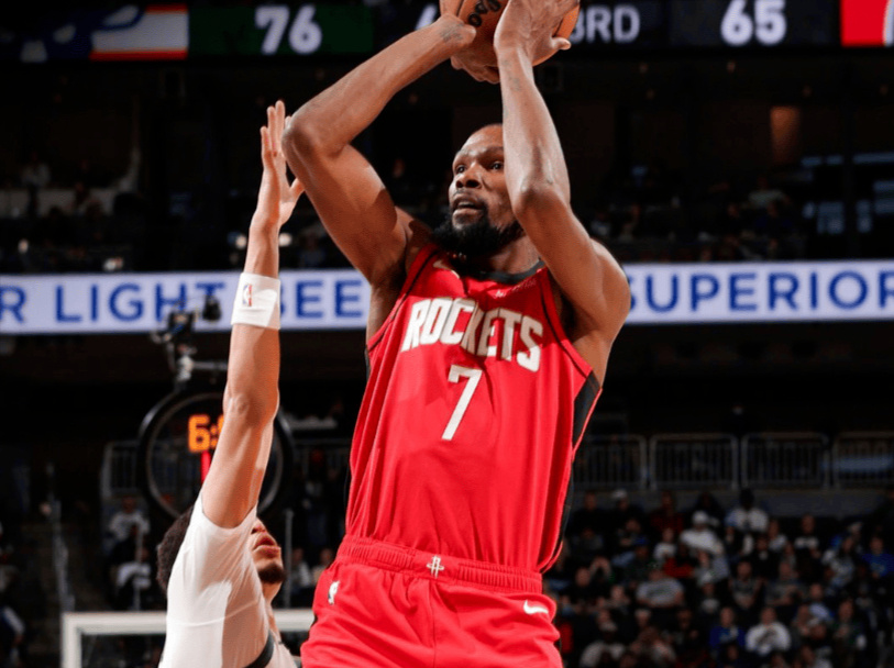 37岁的杜兰特则将高效刻进了本赛季的表现中,他场均贡献25.9分5.3篮板4.4助攻,投篮命中率51%,三分命中率更是达到40.4%,截止目前一共命中了110记三分。作为联盟顶级的得分手,杜兰特的进攻手段愈发全面,中距离跳投无解的同时,三分线外的把握度也居高不下,搭配88.6%的罚球命中率,无限接近“180俱乐部”。