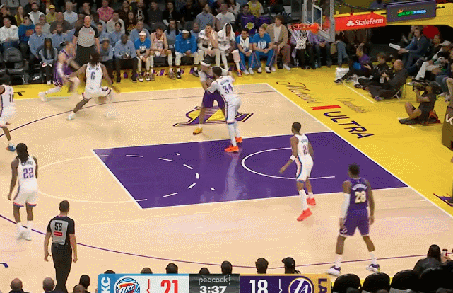 湖人憾负雷霆3连胜终结!詹姆斯空砍22+6+10 杰伦威突然复出砍23分
