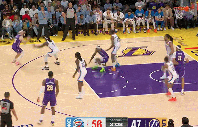 进入末节争夺,斯马特3分命中,卡鲁索连得5分,斯马特3分再中,杰伦威反击上篮打进,切特一对一也有,詹姆斯上篮止血,杰伦威2分回应,詹姆斯上篮打进,杰林、杰伦威连得5分,斯马特、八村垒回应5-0攻击波,切特补篮打进,八村上篮回应,杰伦送关键中距离,詹姆斯丢关键三分,最终湖人不敌雷霆3连胜终结。