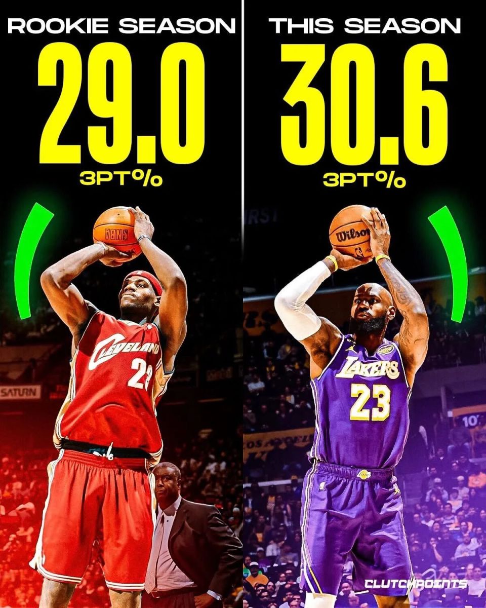 詹姆斯连续21年入选全明星首发的纪录,上个月也被终结了,不过他后来以全明星替补的身份入选。詹姆斯本赛季三分命中率30.6%,职业生涯第二低,仅高于新秀赛季的29%。本赛季詹姆斯打了35场比赛,三分球合计160投49中。