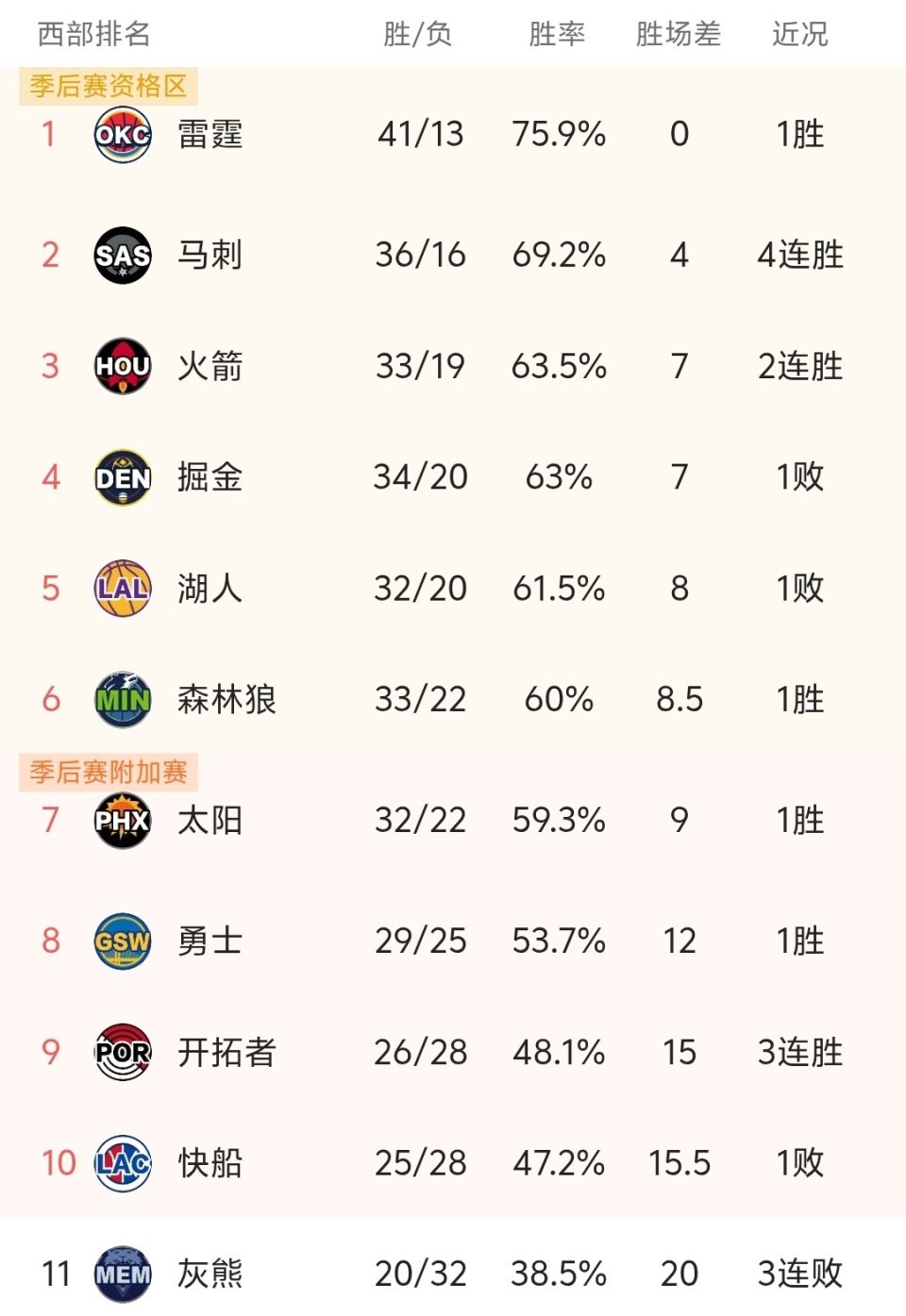 随着湖人108-136惨负马刺,火箭胜快船,NBA最新积分榜出炉!