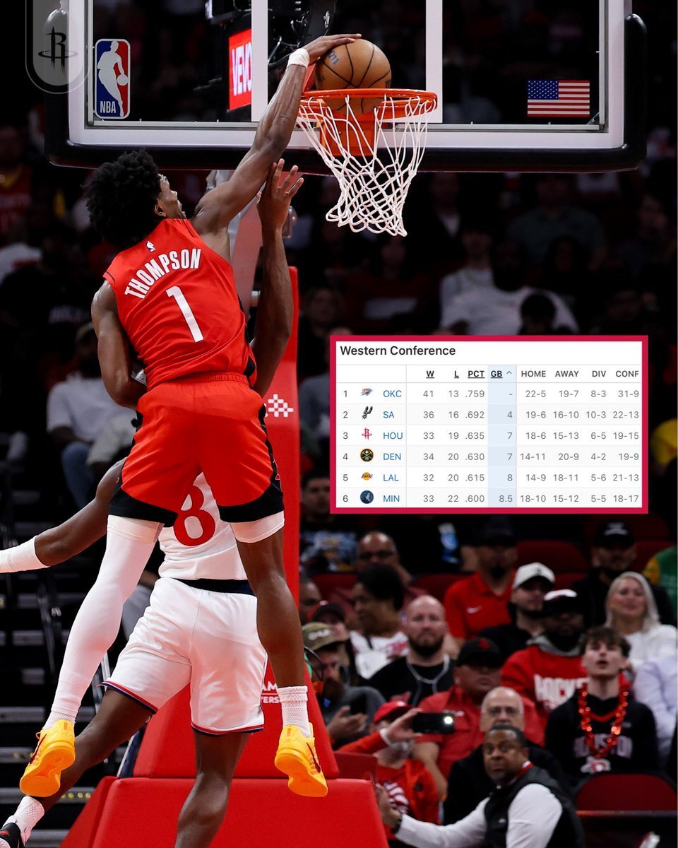 北京时间2月11日,休斯顿火箭官方宣布球队已升至西部第三的位置,这一排名变化源于近期西部格局的剧烈变动。 根据最新NBA积分榜,火箭队目前战绩为33胜19负,胜率达到63.5%。这一排名的提升主要得益于两方面因素:首先,火箭在2月8日客场以112-106击败联盟领头羊雷霆,终结了此前的两连败;其次,卫冕冠军掘金在2月10日主场以117-119不敌骑士,战绩变为34胜20负,胜率为63.0%。 虽然掘金在总胜场数上领先火箭一场,但按照NBA排名规则中胜率优先的计算方式,火箭凭借更高的胜率成功超越掘金,跃居西部第三。这也是火箭本赛季至今取得的最高排名。 火箭主教练乌度卡在谈到这一成就时表示:'我们的目标从来不是满足于某一特定排名,而是每天进步,为季后赛做好准备。'球队核心杜兰特近期状态火热,场均贡献29.4分,而内线支柱申京则场均拿下18.2分9.1篮板的全面数据。 值得注意的是,火箭将于今日主场迎战快船,这是他们背靠背赛程的第一场。若能延续胜利势头,火箭有望进一步巩固西部前三的位置。本赛季至今,火箭对阵西部排名高于自己的球队战绩为3胜6负,面对强敌仍需提升竞争力。 随着常规赛进入最后阶段,西部竞争愈发激烈。从第三名的火箭到第七名的太阳,五支球队之间的胜场差仅为2.5场,任何一场比赛的结果都可能改变排名格局。
