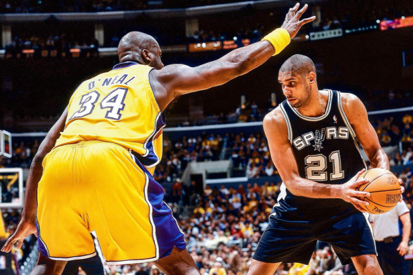 大前锋邓肯,是"石佛"般的稳定象征,19年生涯坚守马刺,5夺总冠军、3次当选总决赛MVP,历史第一的15次最佳防守阵容入选次数,让他成为内线防守的定海神针,低调高效的风格的他,无需大量球权便能完美适配内线搭档。中锋奥尼尔,是历史最具统治力的内线巨兽,4冠3次总决赛MVP,巅峰时期在内线无人能挡,他的存在能最大化库里、乔丹拉开的进攻空间。