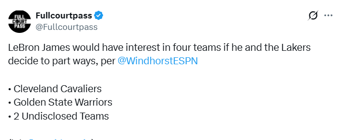 曝老詹有兴趣加盟三到四支球队!骑士勇士在列 若顶薪无法留湖人
