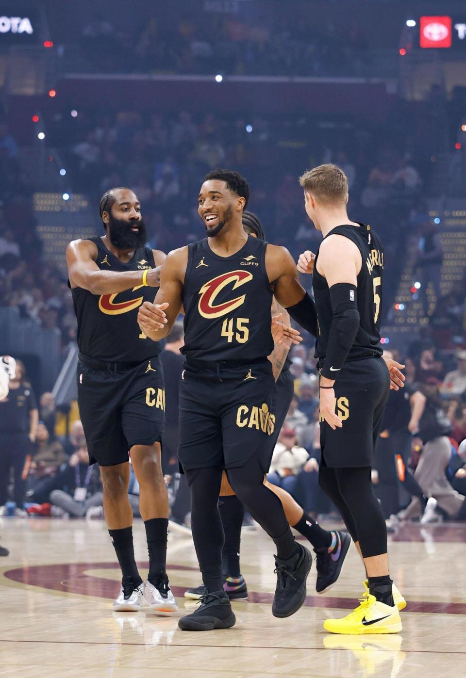 骑士队-哈登、米切尔、梅里尔、泰森、阿伦。