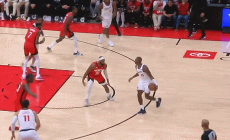 谢泼德持球左手大抛投命中。