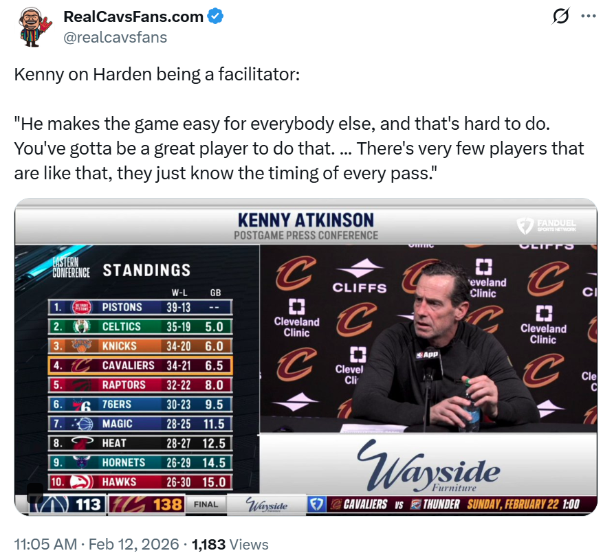 正如赛后骑士主帅阿特金森所说:“哈登让身边的每个人都打得更轻松,他给艾伦每一次传球的时机把握都非常精准,就连分球到外线的选择也恰到好处,你得是顶尖球员才能做到这一点,联盟里没几个人真正能做到。”