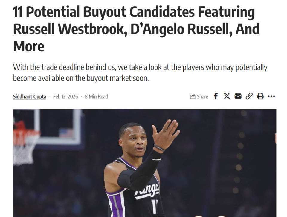 由于国王队已经彻底摆烂,如果威少仍希望参加季后赛,那么买断将是合理的选择,相信也会有部分希望提升板凳席深度的球队愿意押宝他。