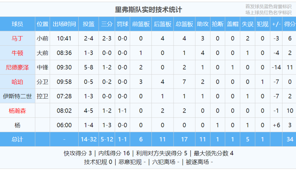 迪伦-哈珀迎着哥哥投进绝杀,安东尼队40-34淘汰小里弗斯队。杨瀚森替补出战8分钟,投篮5中4,三分2中1,罚球1中1,得到10分2篮板。得分全场第二高,仅次于尼德豪泽的11分。单场10分也超过了小杨常规赛最高分(9分)。