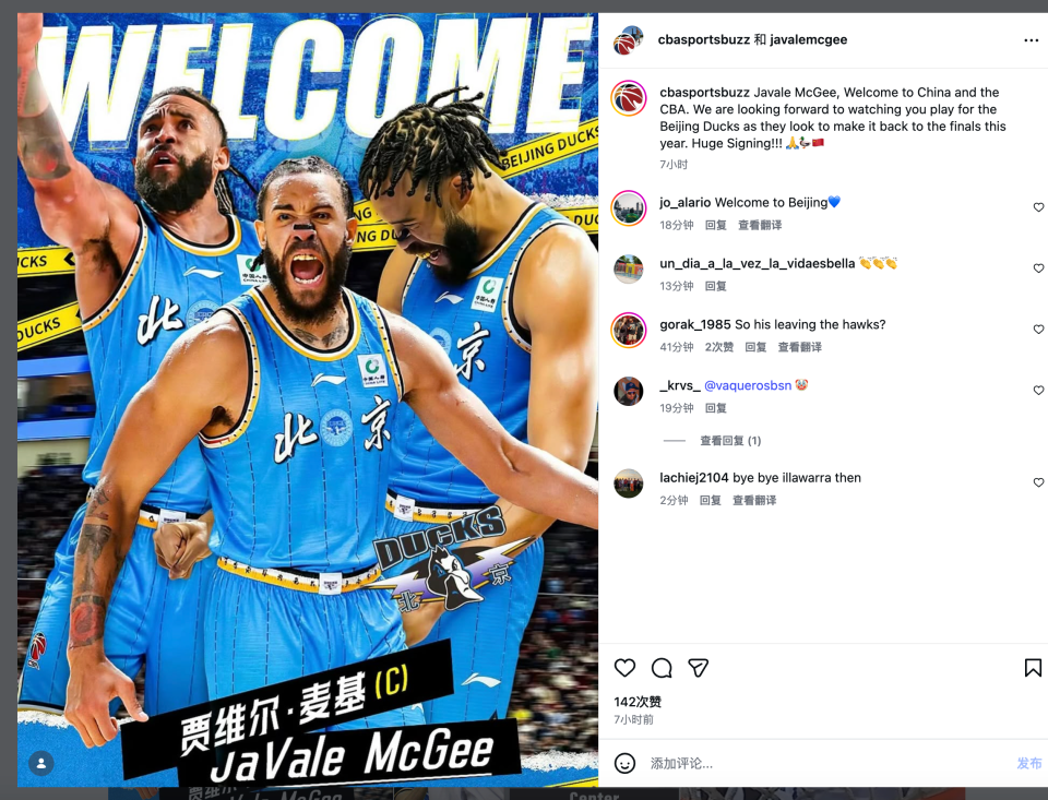 前NBA中锋麦基在社媒上自宣加盟北京男篮。流言传出一段时间后,麦基将为北京队出战CBA比赛也要尘埃落定。