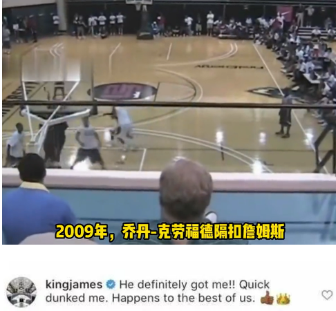 最早被“没收录像带”的是2009年的乔丹·克劳福德,不过詹姆斯本人并未避讳,公开承认自己曾被对方隔扣。