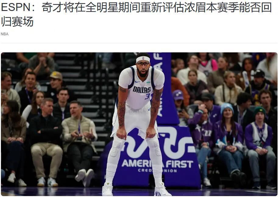 此前有消息曝出本季安东尼·戴维斯不会复出,不过据奇才总经理透露:球队将会在全明星后重新评估本季浓眉能否复出。