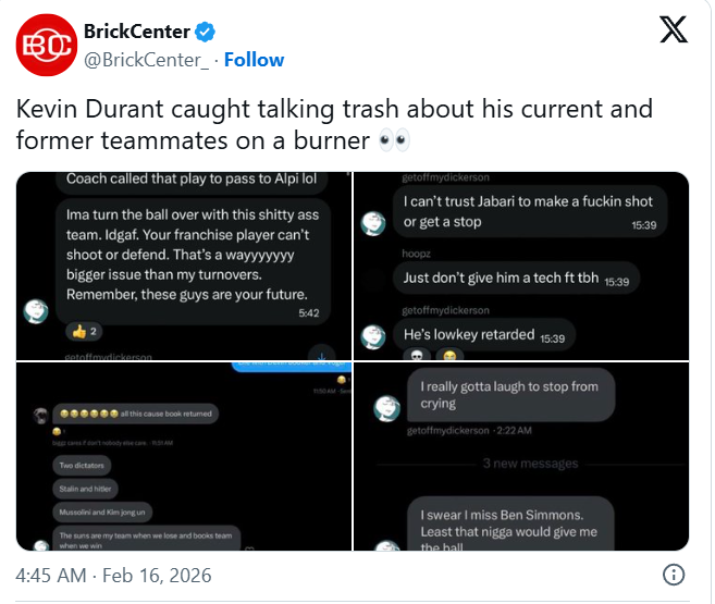据未经证实的截图显示,一个被指是杜兰特的账号,曾批评过申京和小贾巴里-史密斯,也批评过太阳时期的队友。