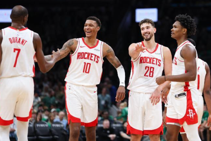将时光拨回到去年休赛期,火箭队与太阳队完成了一笔8换1史诗级大交易,火箭队送出杰伦格林+狄龙+2025年10号签+5个次轮签(2025年59号签+2026年两个次轮签+来自凯尔特人的2030年次轮签+2032年次轮签),得到太阳队的杜兰特。从某种意义上讲,火箭队与杜兰特算是真正的双向奔赴!一方面,太阳队阵容薄弱内忧外患,不足以支撑杜兰特的冠军梦;另一方面,火箭队阵容厚实前途无量,需要杜兰特这样兼具实力与经验的关键先生。