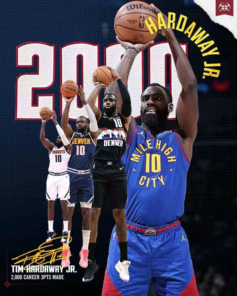 小哈达威达成生涯常规赛命中2000记三分里程碑。