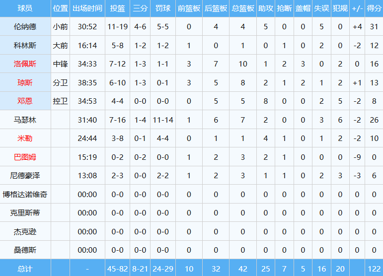 湖人数据如下: