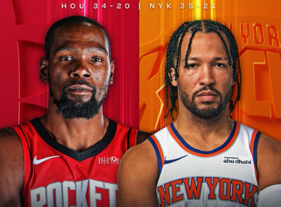 凯文-杜兰特在花园球馆客场场均得分位列历史第二高,他将率领火箭在黄金时段对阵杰伦-布伦森领衔的尼克斯。