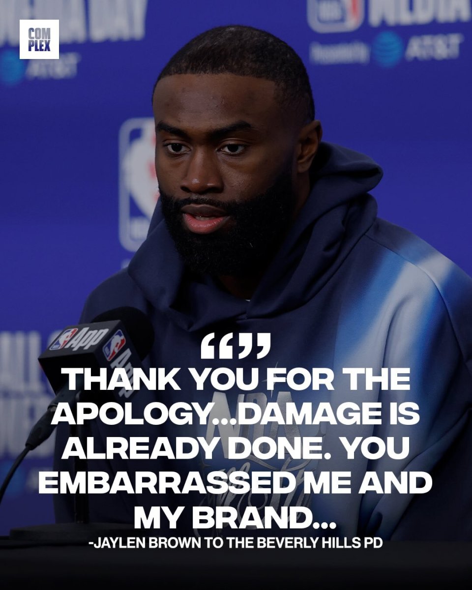 北京时间2月22日,NBA常规赛继续进行。根据名记Marc J.Spears的报道称,凯尔特人队球星杰伦-布朗全明星期间组建的一场私人活动被洛杉矶贝弗利山市当地警方叫停,他正在考虑起诉洛杉矶警方。