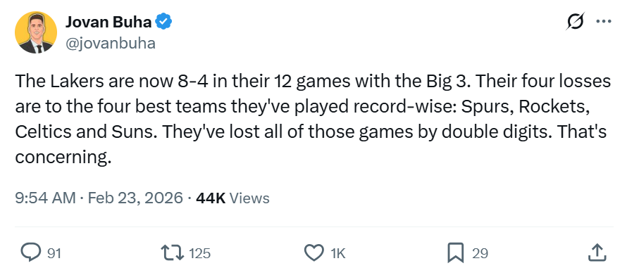 湖人媒体PurpGolded更是发文失望表示:“湖人这样的表现很难突破首轮。”