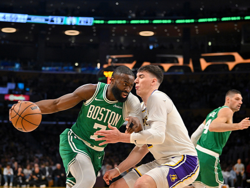 杰伦·布朗,这个在塔图姆缺阵后独自带队的“二当家”,用一种近乎残暴的方式在湖人的主场砍下32分8篮板7助攻 。
